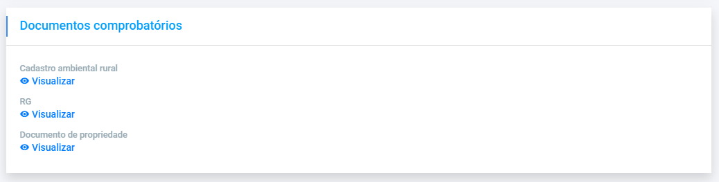 Já para listagem que acontece em cards, isto é, listagens que não ocupam 100% da página, é possível seguir o protótipo do anexo 6, onde o espaçamento entre os itens é menor, existe um botão de visualizar onde podesse ver os detalhes do item e por terem um espaçamento menor entre eles, existe uma linha entre eles para delimitar o espaço de cada item, como mostrado no protótipo a seguir: