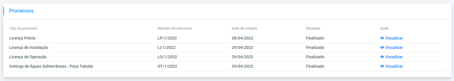 Nos anexos a seguir vemos a listagem de processos e empreendimentos. E como dito anteriormente, a visualização dos dados acontece, mas o usuário não tem uma boa experiência quando muitos dados são mostrados nessas páginas. Além de que a caixa de pesquisa segue formatos diferentes em ambas as páginas.