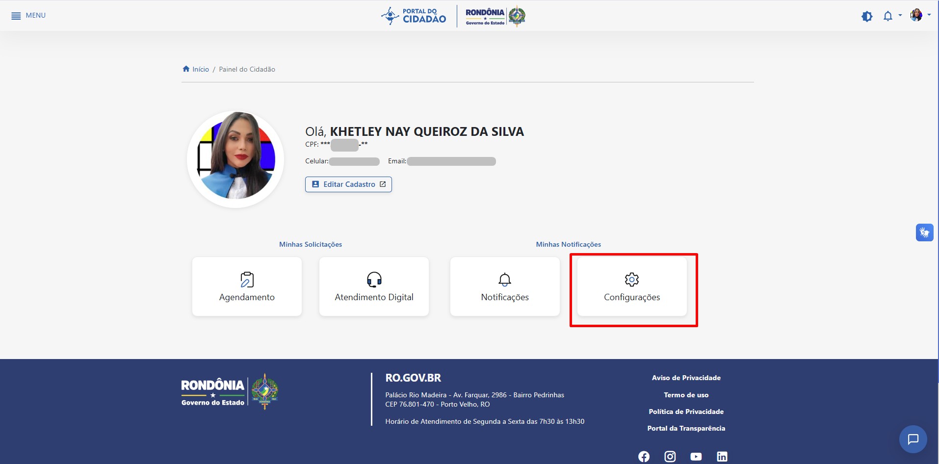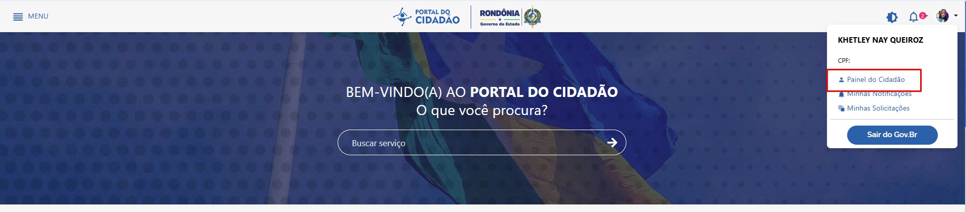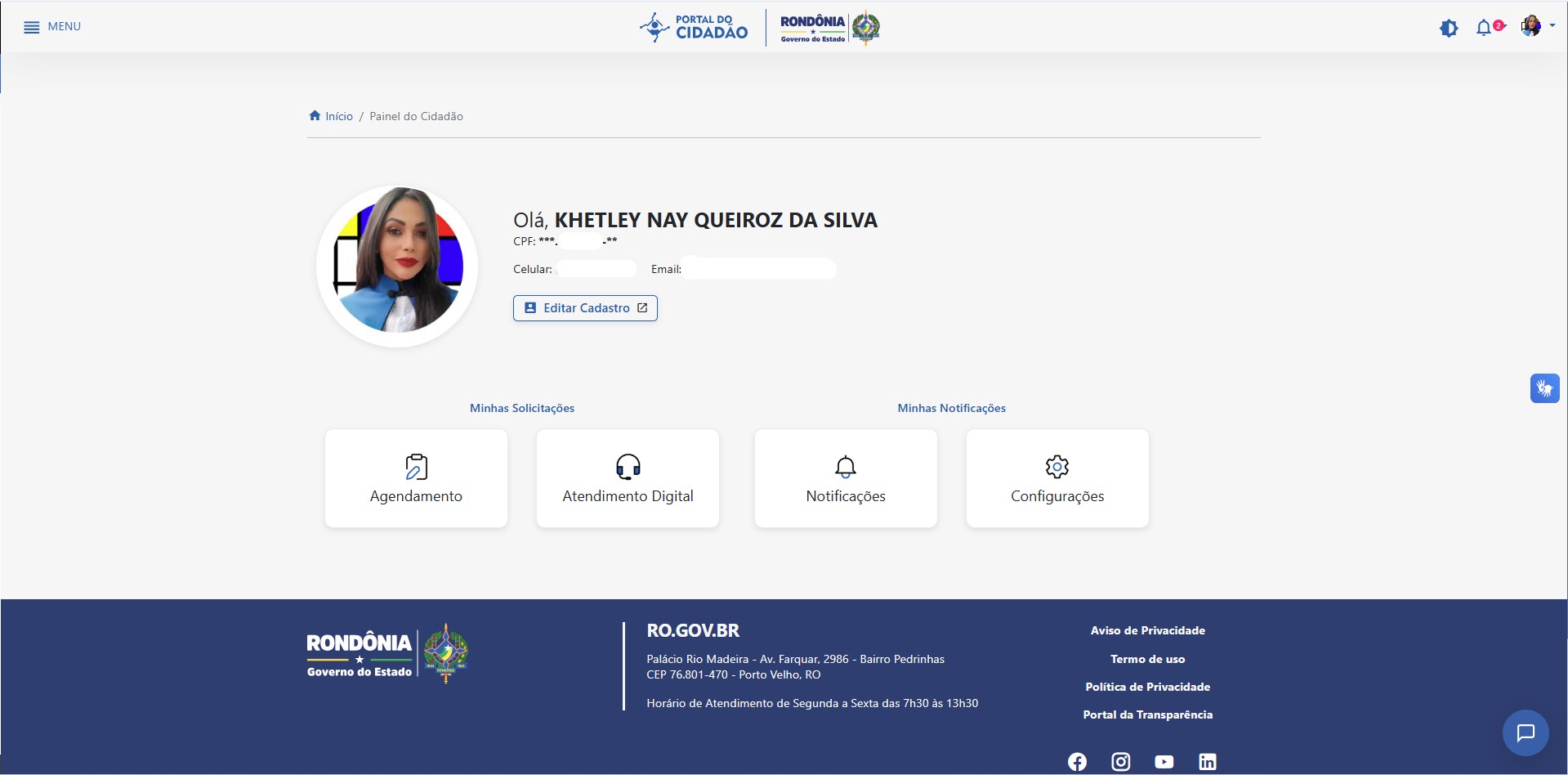 Na figura 6.1 o cidadão poderá ter acesso as suas informações, além de ter acesso, também, as Minhas solicitções e Minhas notificações, como mostrado na imagem a seguir: