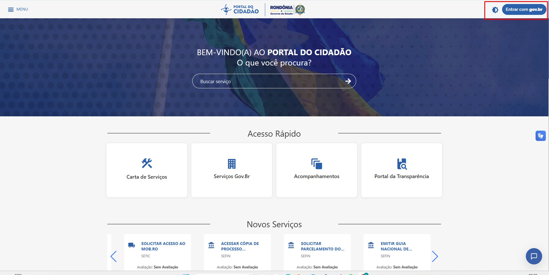 ㅤㅤㅤComo mencionado no capítulo 1, antes de solicitar qualquer serviço dentro do Portal do Cidadão, é necessário logar através do Gov.Br clicando no botão destacado na figura 2: